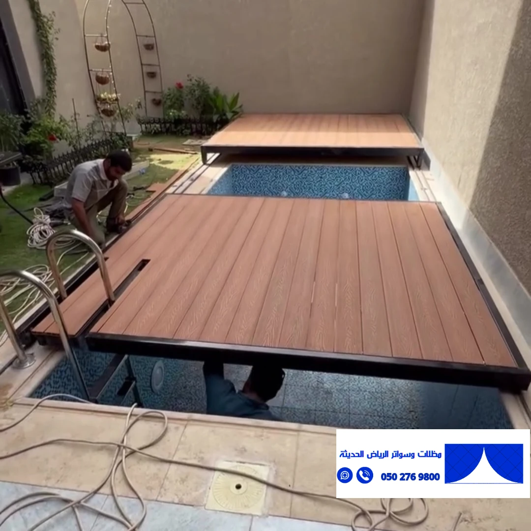 أغطية مسابح بديل خشب متحركة في الرياض – تصميم عصري وحماية مثالية